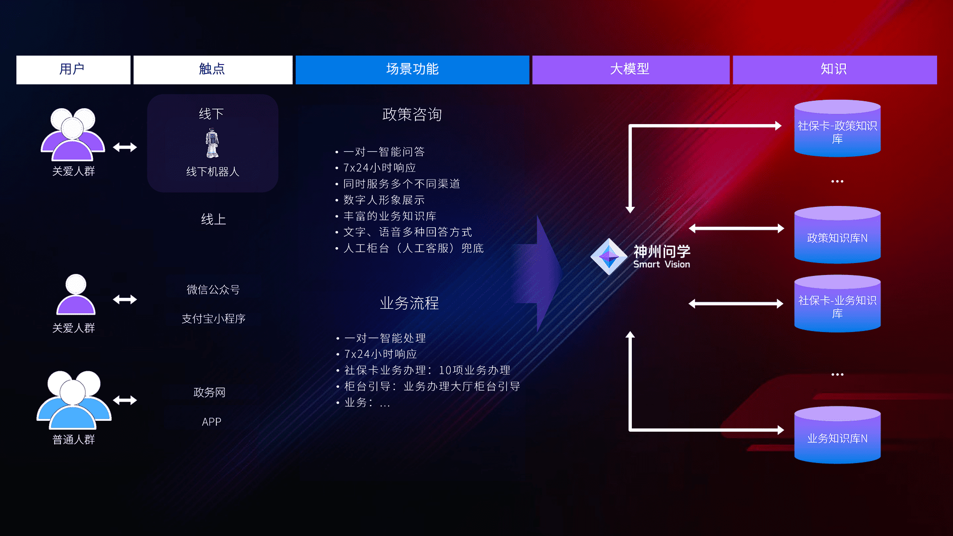 • 线上线下全覆盖:线上提供微信公众号、、、支付宝小程序、、、、政务网、、、、app多种渠道,,与线下机器人形成完整服务体系。。。